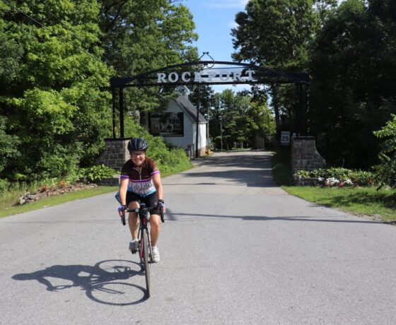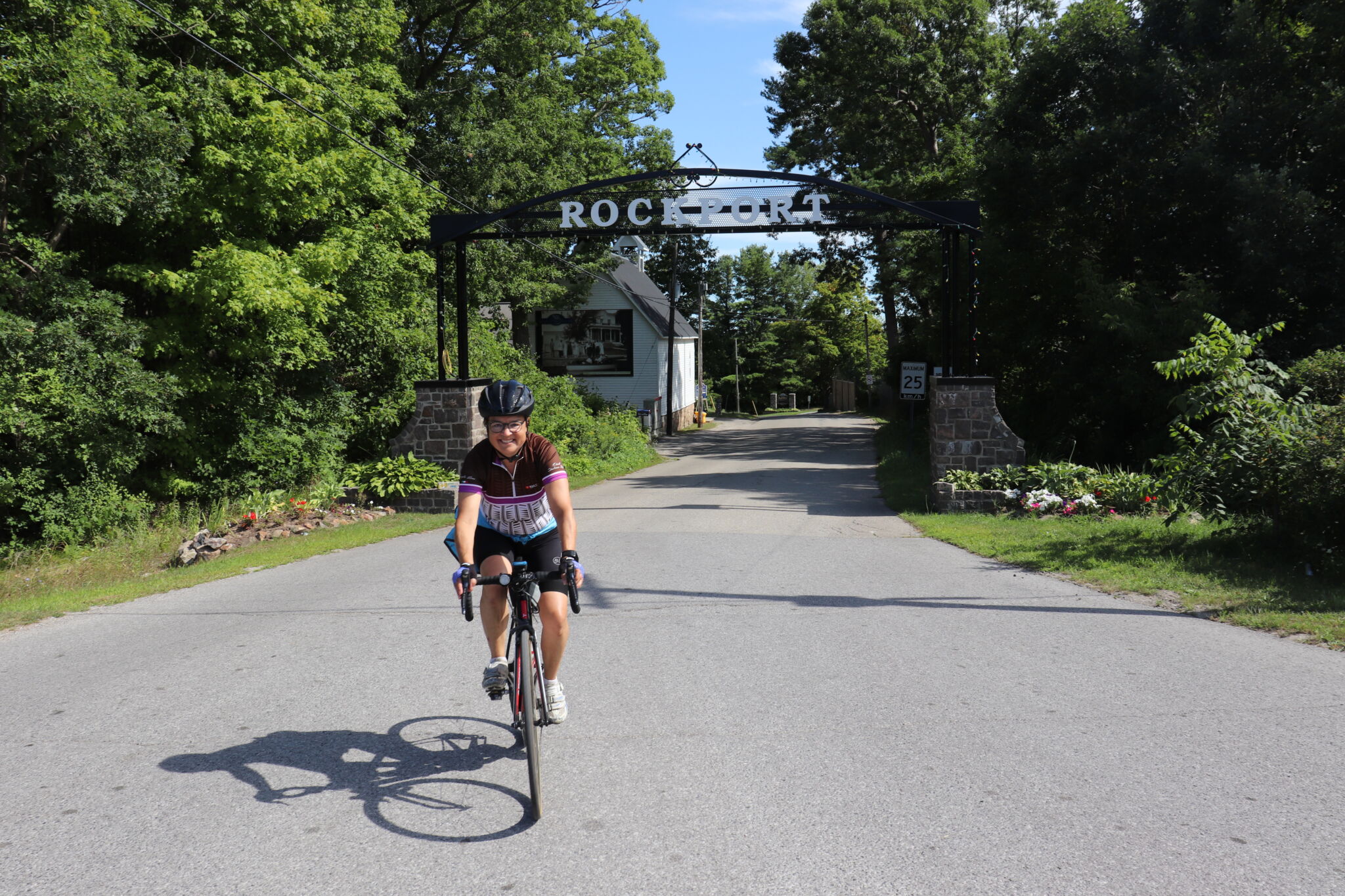 Leaving Smith Falls/Perth, we ride through rolling green hills before reaching Elgin. Then north of Battersea, we find ourselves in the classically Canadian Shield features of the Frontenac Arch, as the road climbs, descends and winds through cuts in granite rock, around lakes and through white pine forests.